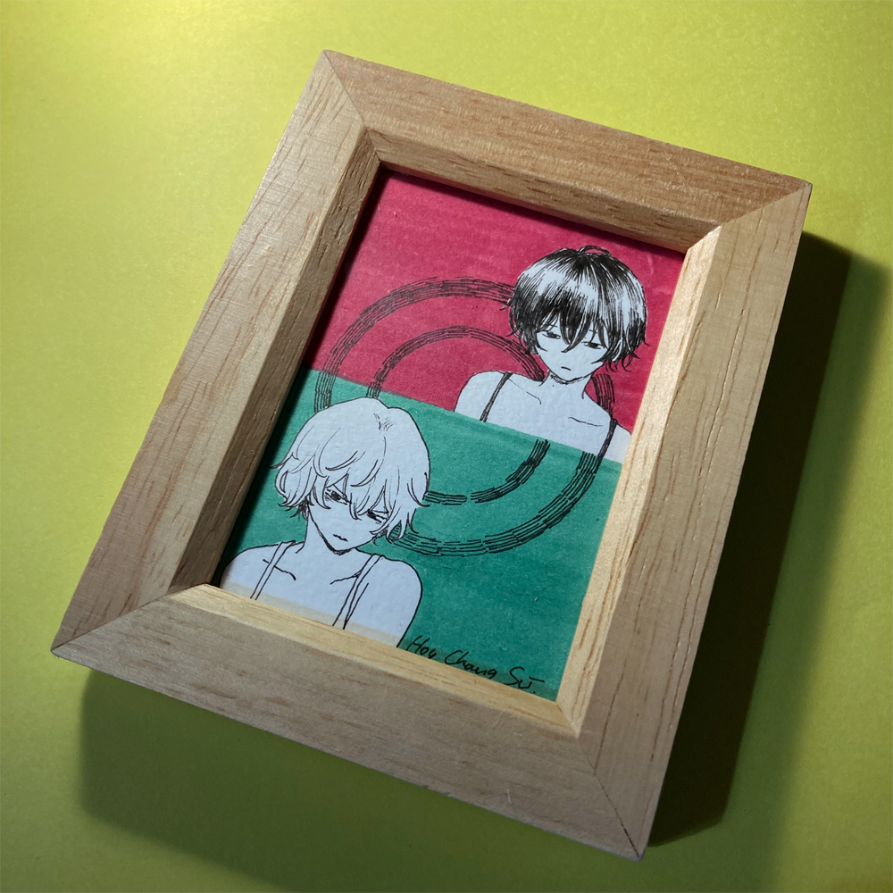 Hoy Chang Su楽曲「左右」リリース記念のミニカラー原画です(9.8cm×7.5cm)。